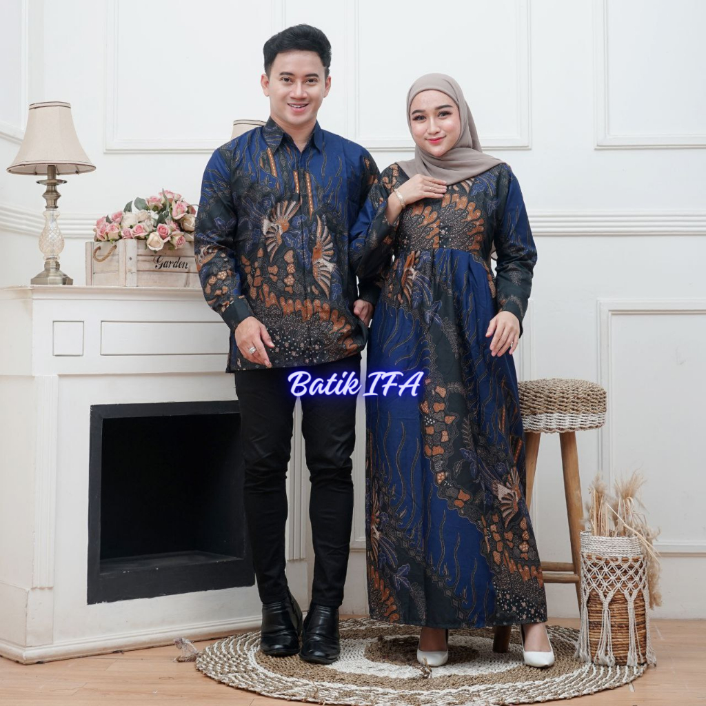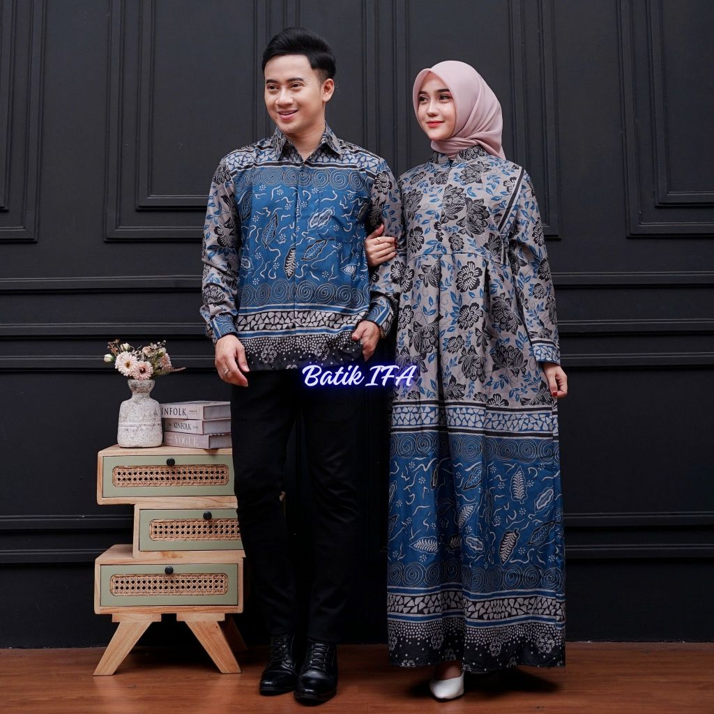 Couple Batik Keluarga - Sarimbit Batik Kemeja Dan Gamis Lengan Panjang - Batik Ifa