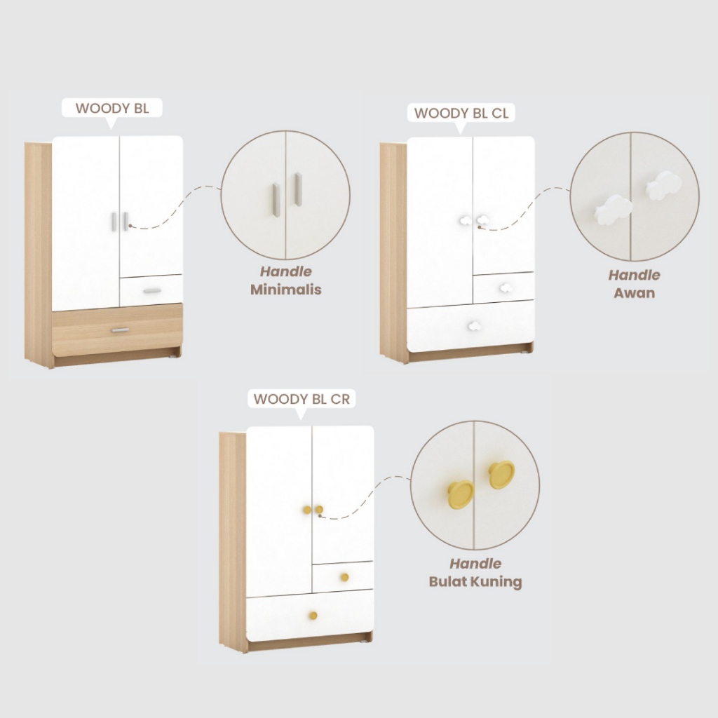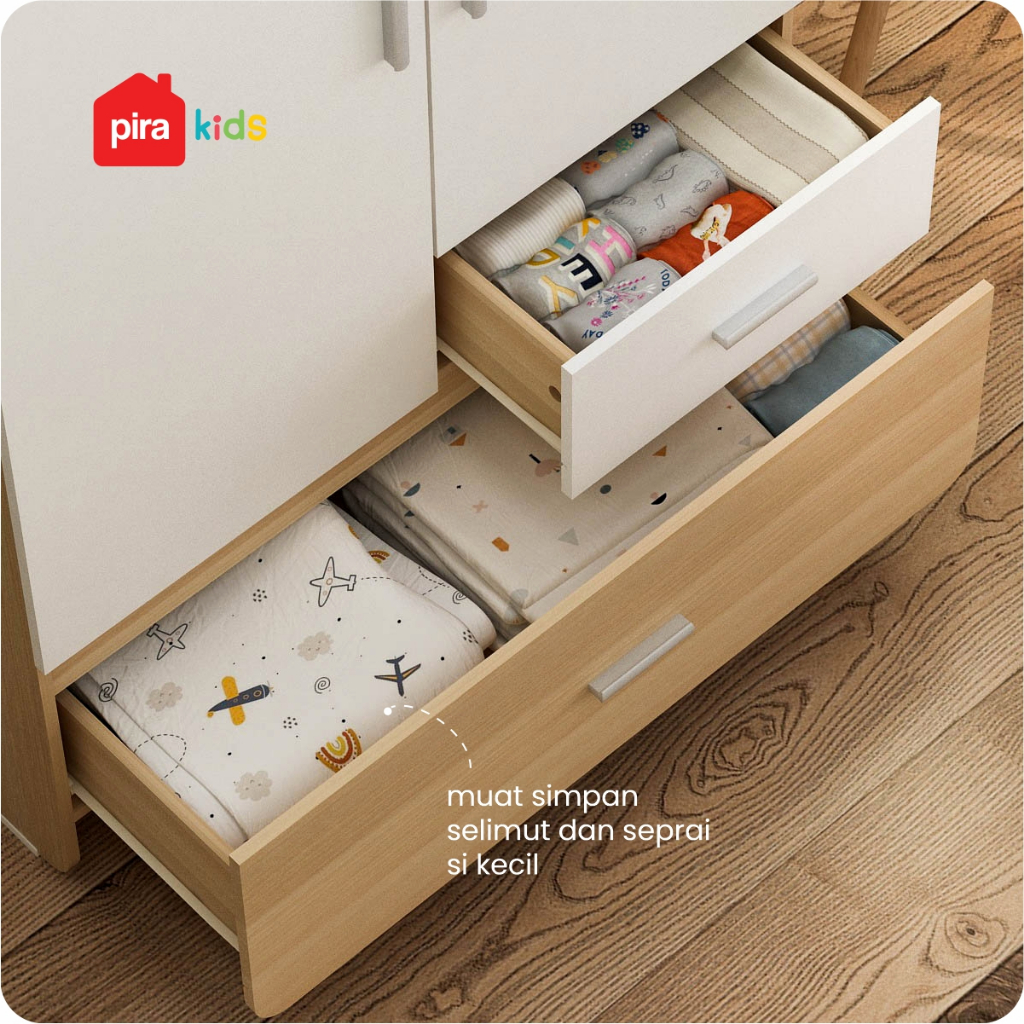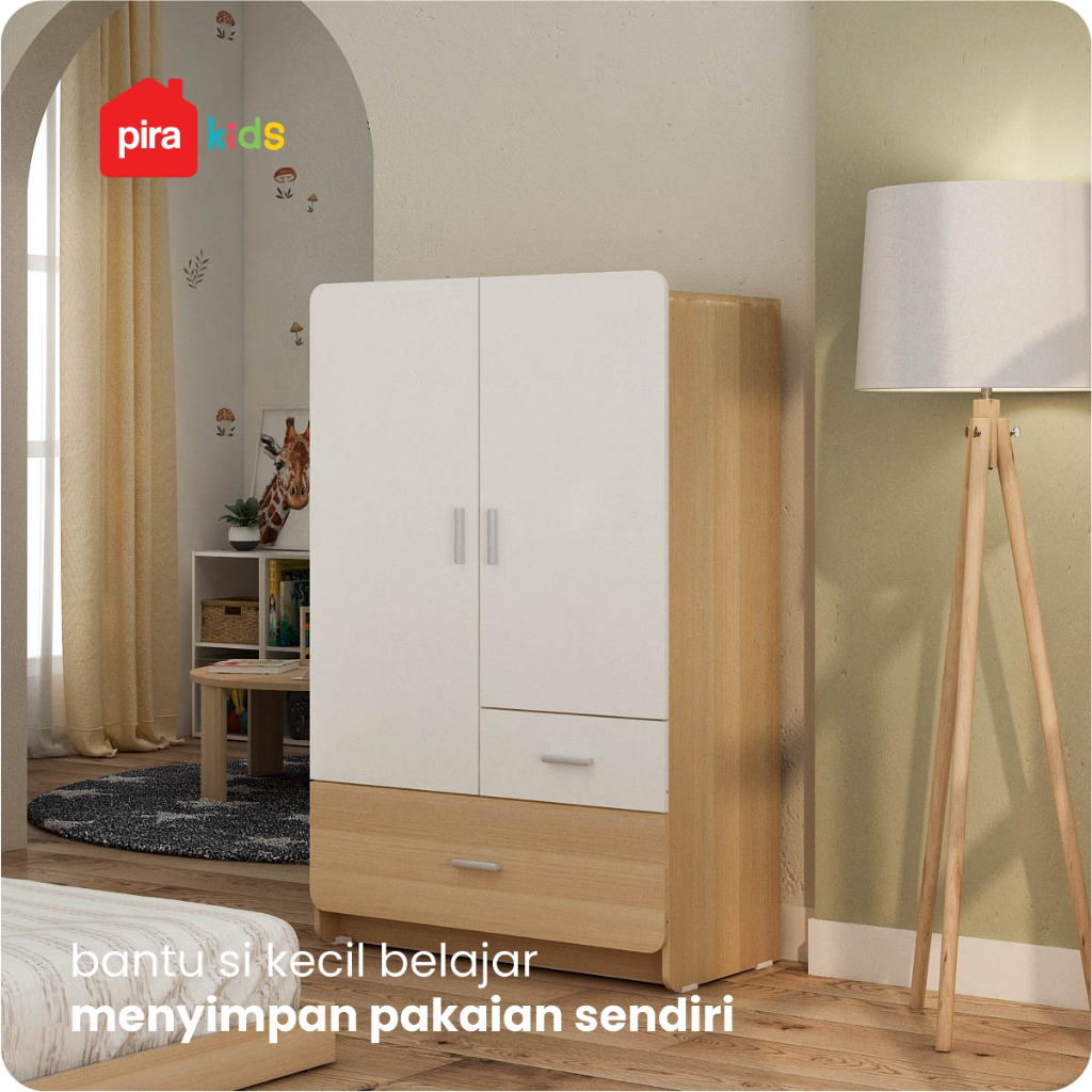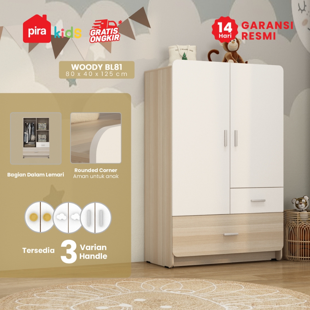 lemari PIRA KIDS - WOODY BL81 Lemari Pakaian Anak 2 Pintu dengan Gantungan
