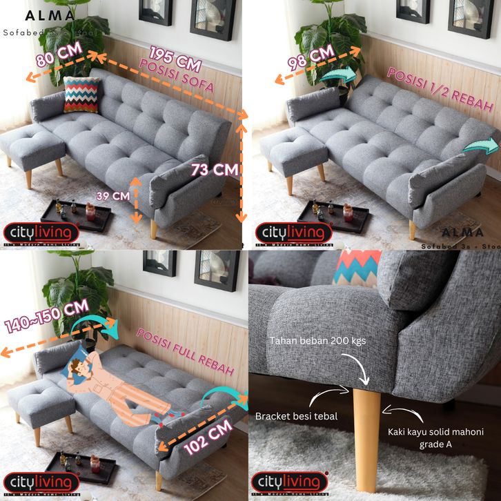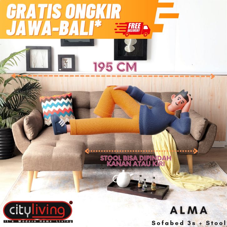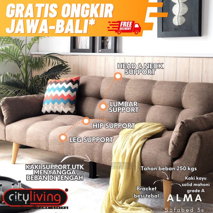 City Living Alma Sofabed 3 Dudukan FREE ONGKIR Jawa-Bali* #sofabed #sofa3dudukan #sofaselonjor #sofaminimalis