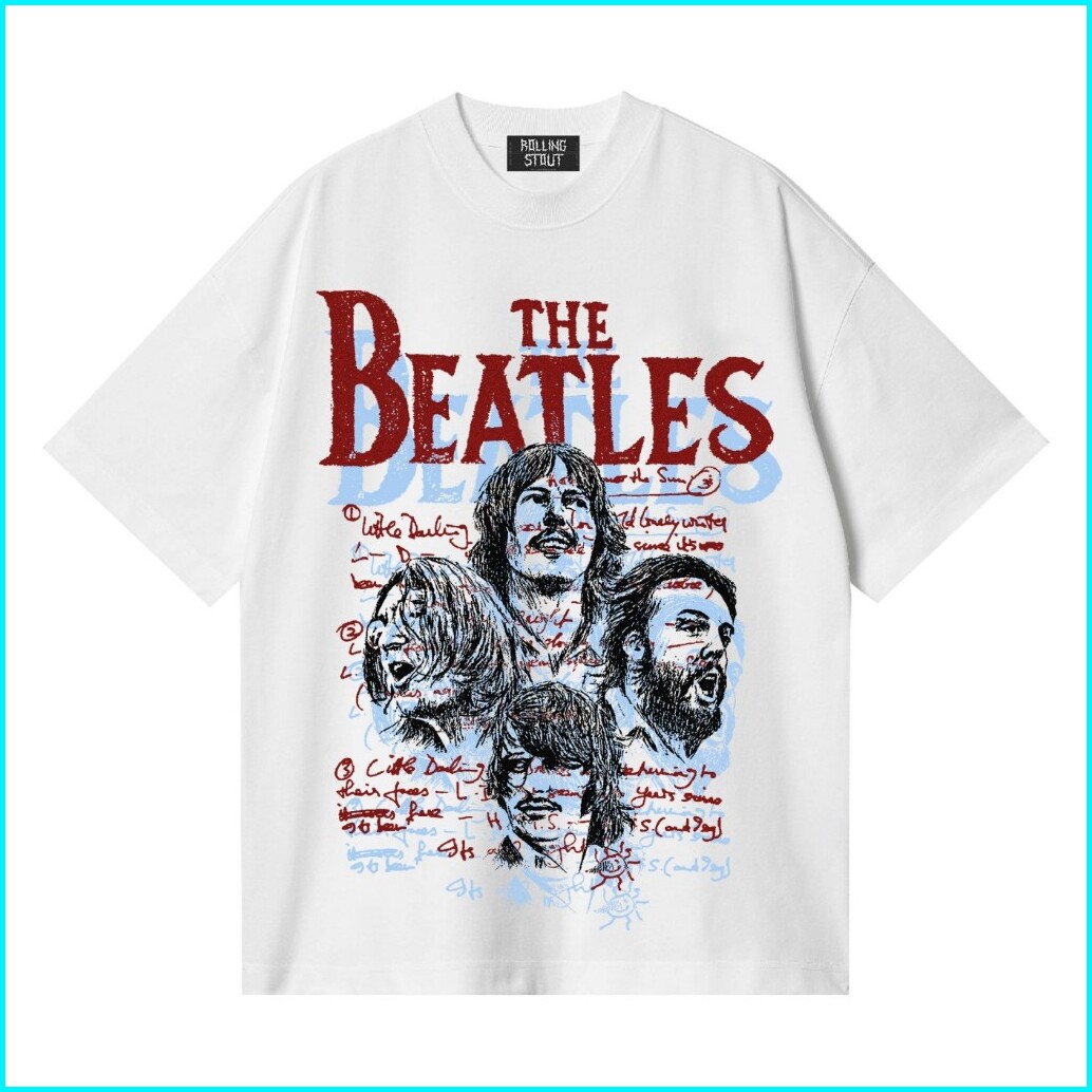 Rollingstout T-shirt - Beatles Lyric White - Baju Musik Metal Rock Pria