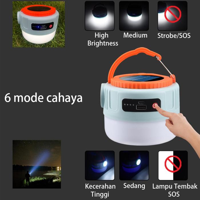 Multifungsi Lentera Kemah Tenaga Surya Dapat Diisi Ulang dengan Lampu Depan Senter Lampu Portabel
