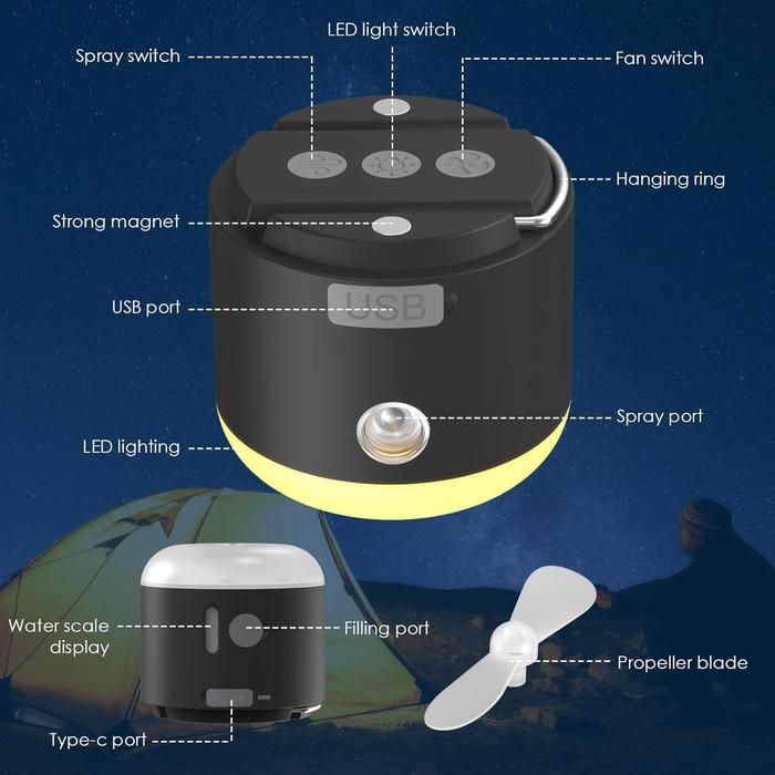 Lampu Lentera Emergency Darurat Kipas Power Bank Humidifier Nano Pelembab Pengusir Anti Nyamuk