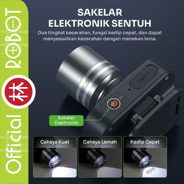 Robot RT-HL01 Lampu Kepala Outdoor Head Light Senter LED Emergency Rechargeable Lamp Camping 650 LM