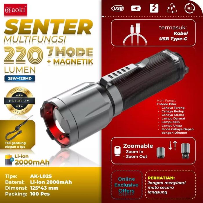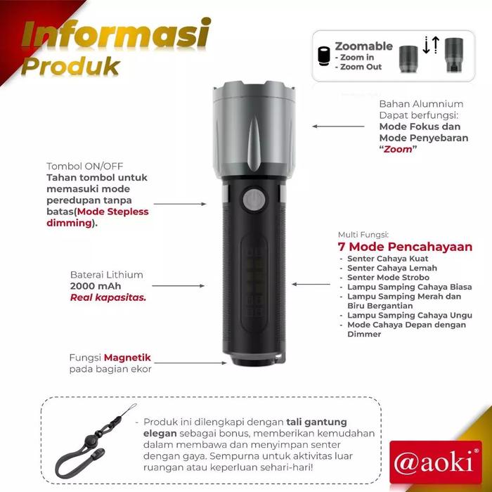 AOKI Senter 7 Mode Cahaya Magnetik Super Terang Portabel Pencahayaan Aktivitas Malam AK L025 - ZS