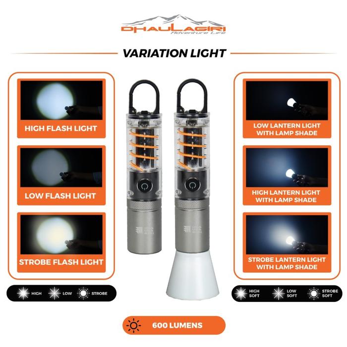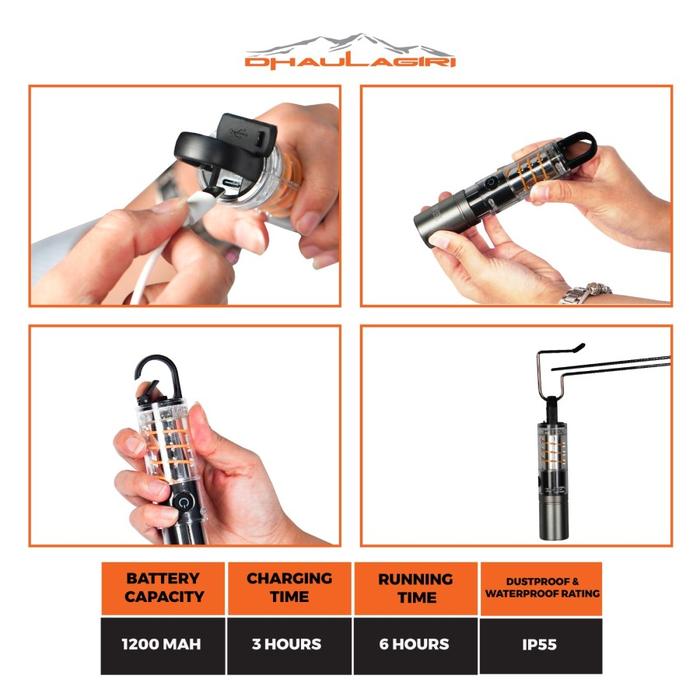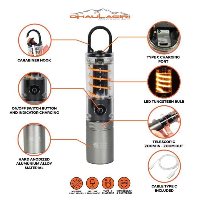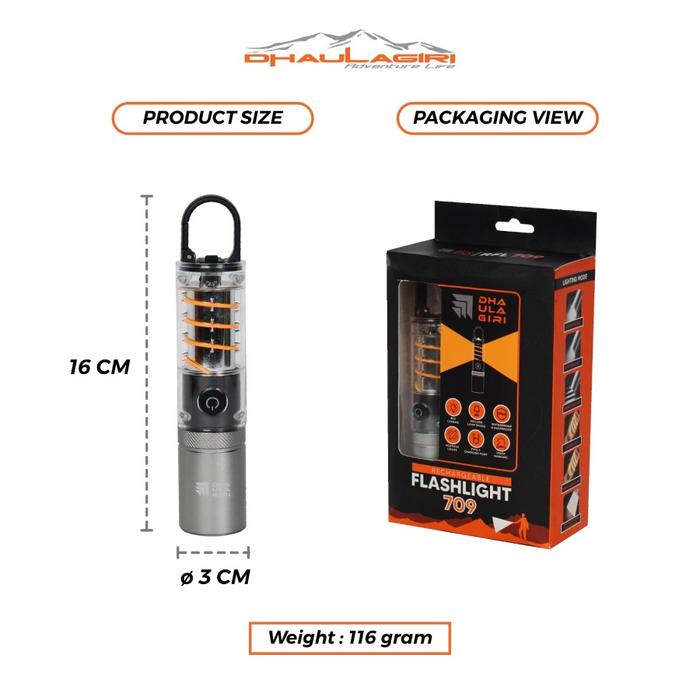 Lampu Senter Lentera Gantung Multifungsi Dhaulagiri Rechargeable Flashlight 709 Camping Campervan