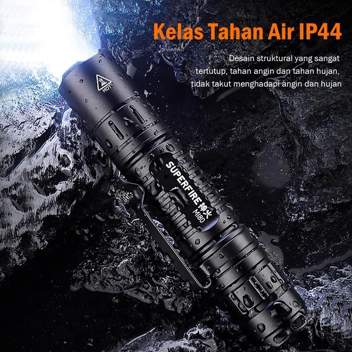 SUPERFIRE Senter Taktis Super Terang Senter Isi Ulang Portabel Cocok untuk Berkemah MI80