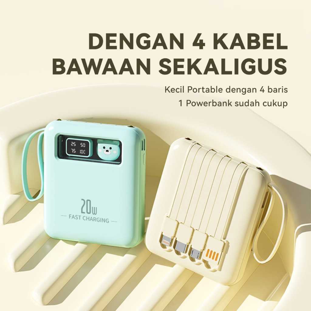 Powerbank 20000mAh LED Power Bank Built Cable Murah Lucu External Powerbank Portable Mobile Phone Charger