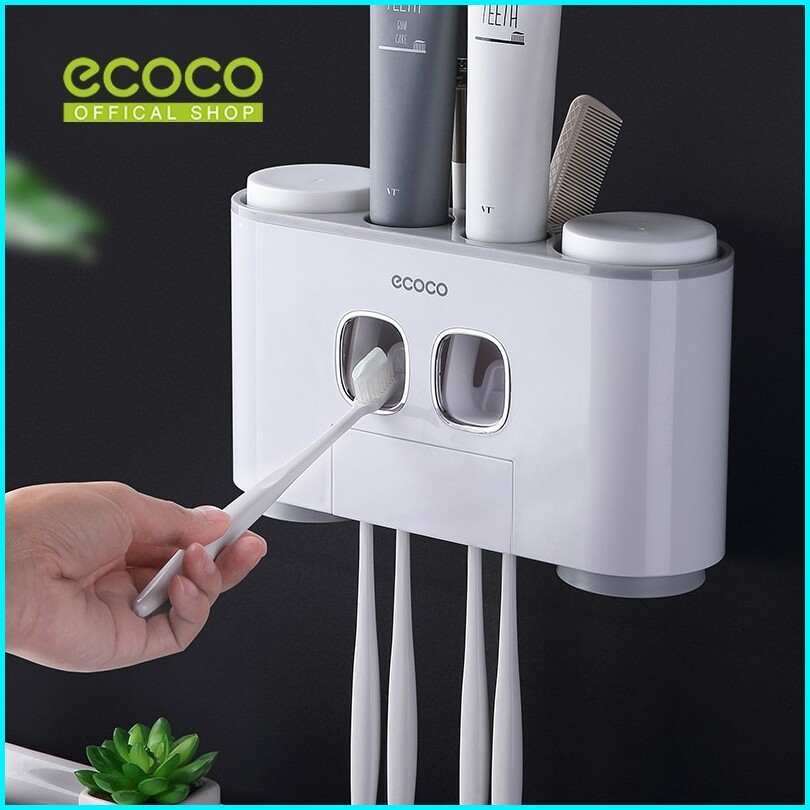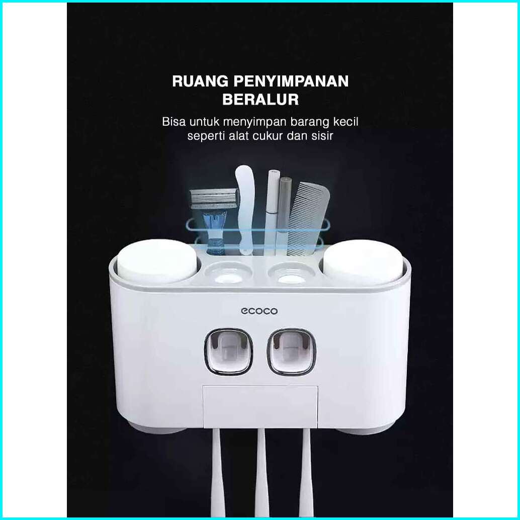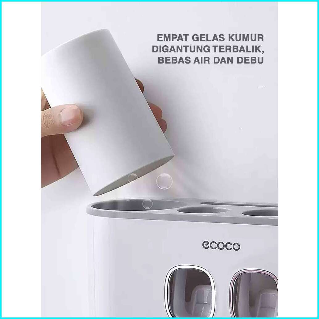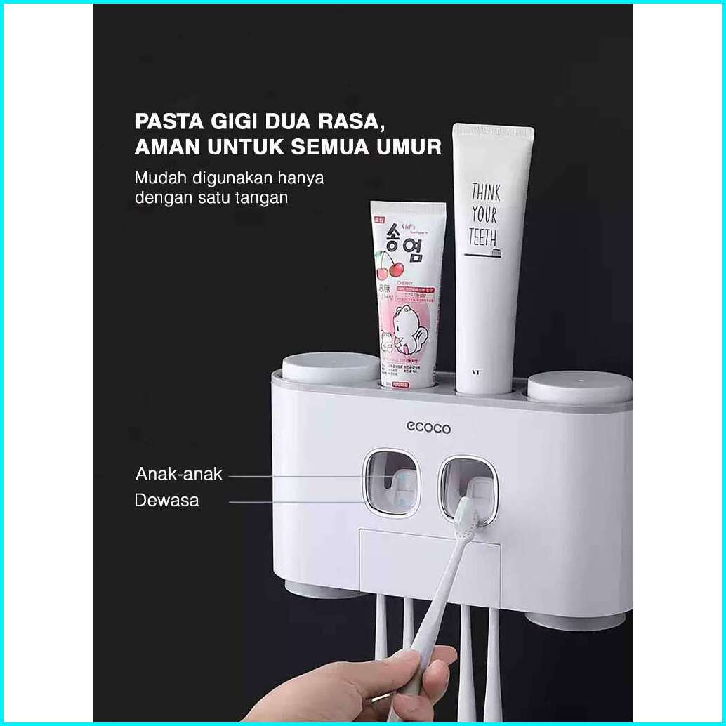 Ecoco Happy Family Wash Set - Dispenser Pasta Gigi Otomatis Tempat Odol Sikat Gigi