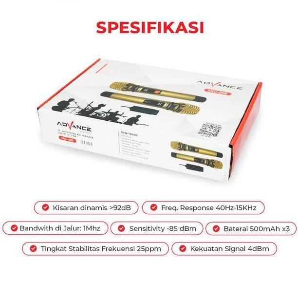 ADVANCE Microphone Double Wireless MIC-206 Garansi Resmi & 100% ORI * K