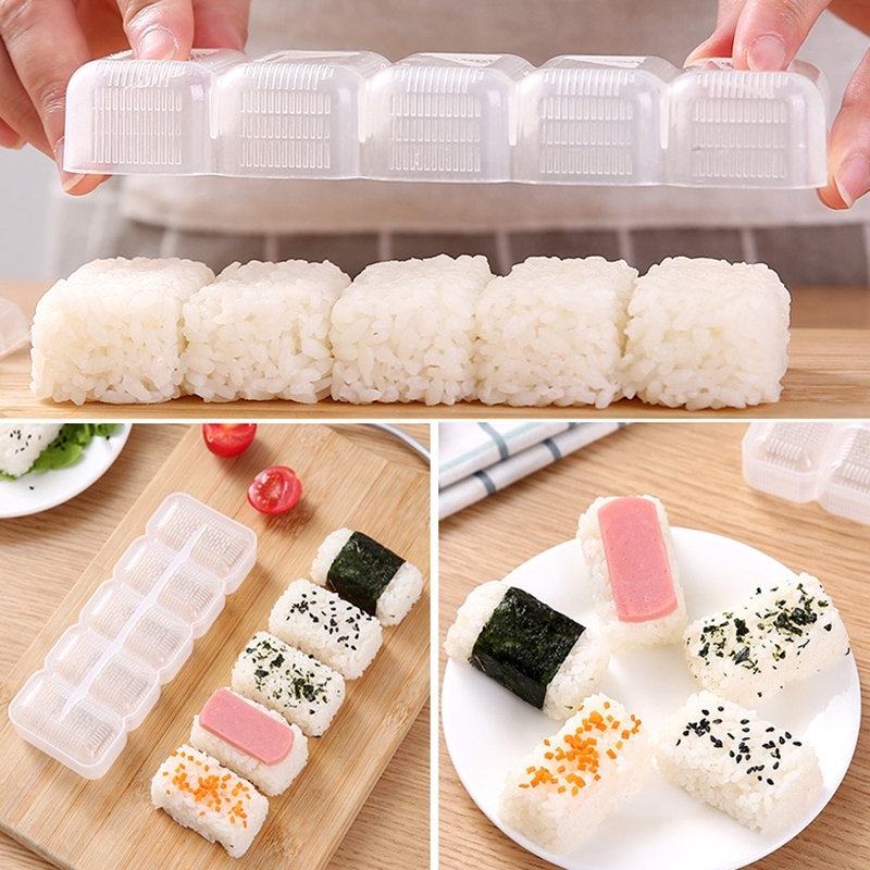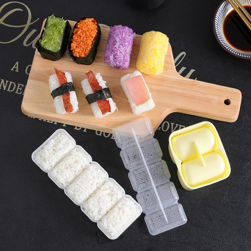 5 Roll Cetakan Sushi Bento Onigiri Bentuk Segitiga Persegi Non Stick Gaya Jepang Susi Bento