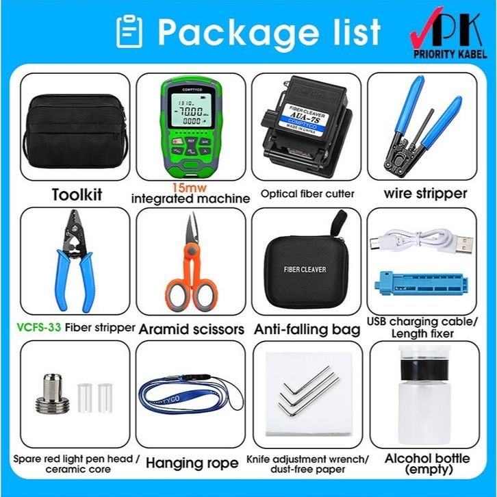 ToolSet Fiber Optic FO AUA-MC70 Fiber Tool Kit Alat Fiber Optik Alat Serat Optik Kit POWER Set Alat Tester Dan