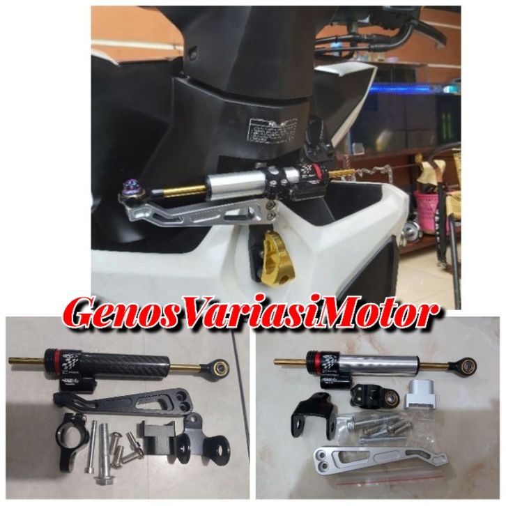 Paket Stabiliser Matris Carbon 16 Click + Breket Steering Dumper Cnc Untuk Bebek Dan Matic UNIVERSAL