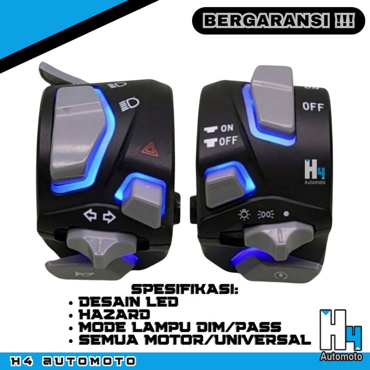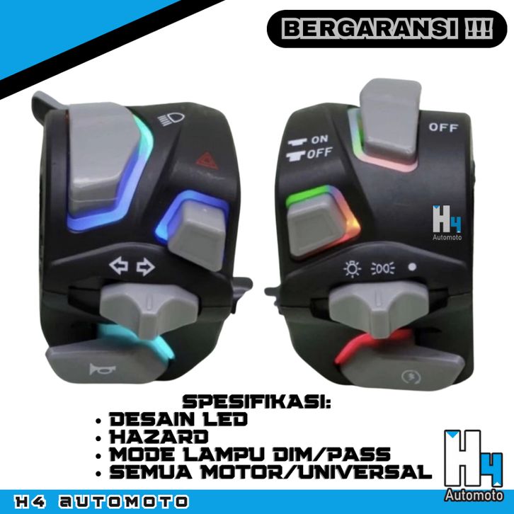 Saklar Holder SET Nyala LED Vietnam H4 Body Black Soket NMAX OLD dan Universal Nyala LED tersedia warna Biru Merah Putih