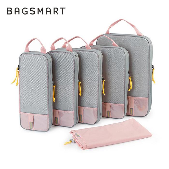 Bagsmart Kubes Pengepakan Kompresi Untuk Koper, 6 Set Organisator Perjalanan Untuk Perlengkapan Perjalanan, Set Tas Orga