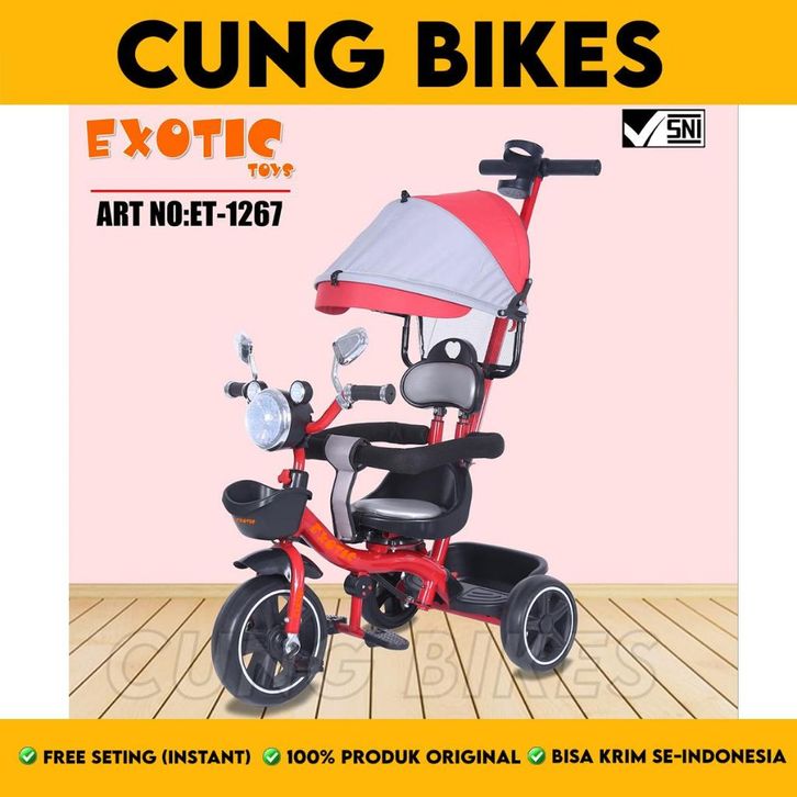 Sepeda Anak Roda Tiga Exotic ET 1267 Stir Kursi Putar Musik Kanopi