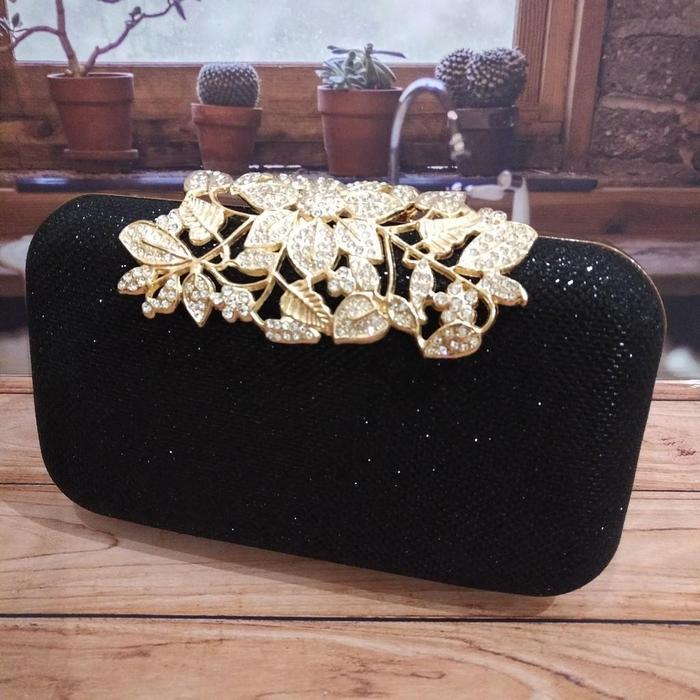 Tas Pesta Wanita Elegan Kondangan Lokal Mewah Unik Taspesta Simple Murah Clutch Dompet 885578 Kliksista Mia - Black