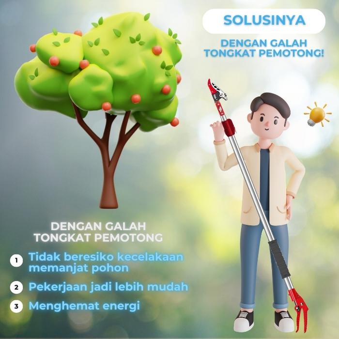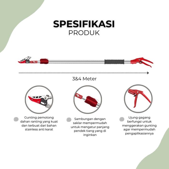 Murah Tree Pruner Galah Tongkat Pemotong Gergaji Gunting Dahan Ranting Tarik - 4 meter Promo