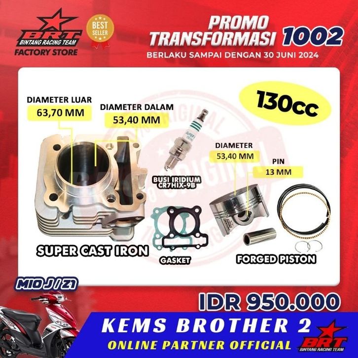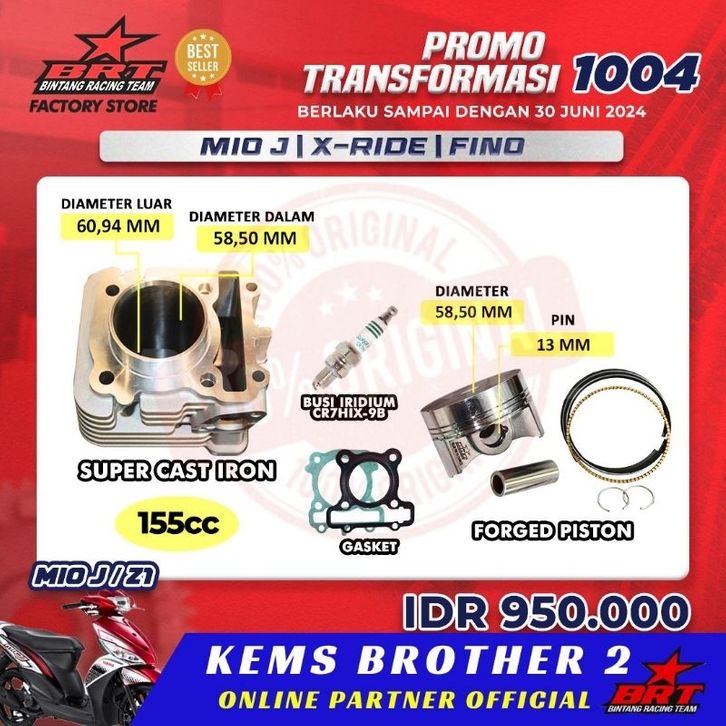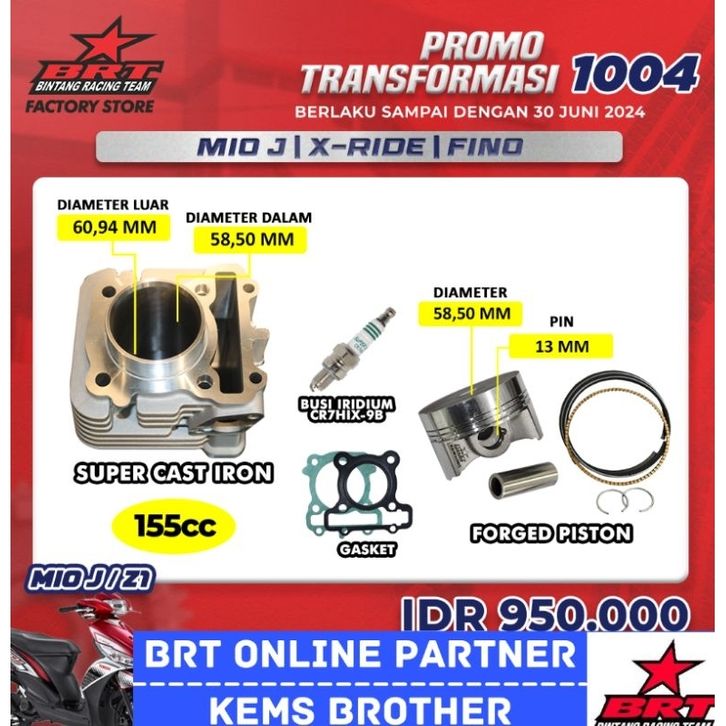 BLOK BORE UP BRT ORIGINAL MIO J JUPITER Z1 X RIDE FINO 115 PISTON 53.4 MM DAN 58.5 MM 130 CC DAN 155 CC ORIGINAL