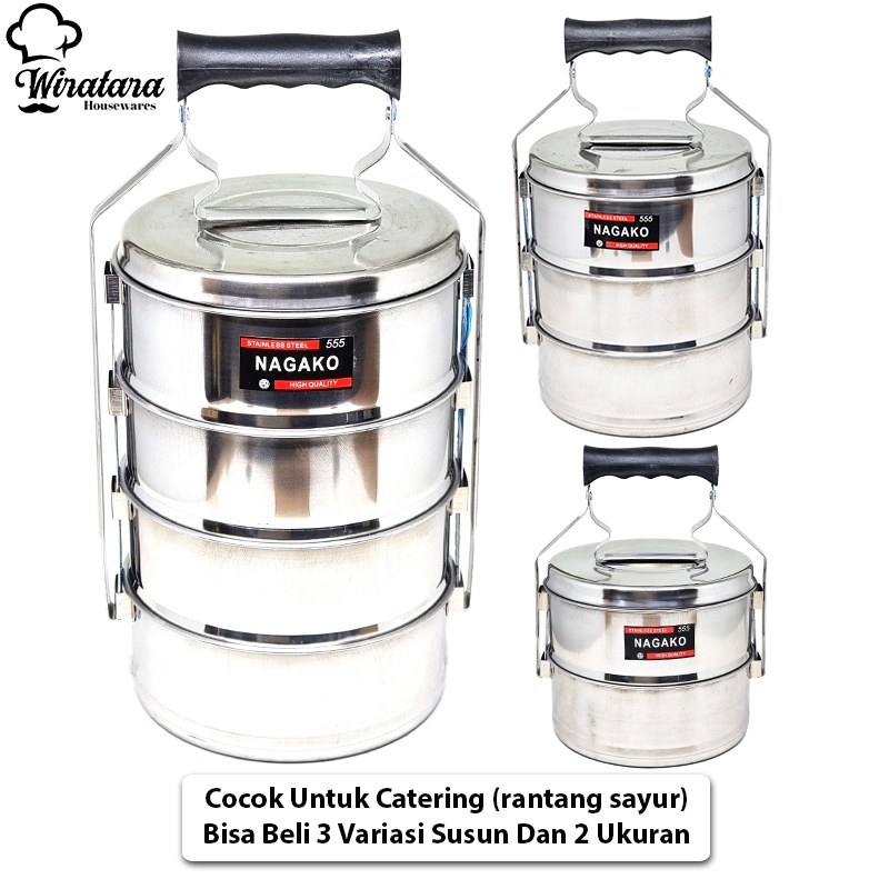 Nagako Rantang Catering Stainless Steel Susun 2/3/4 Tingkat 14cm/16cm Rantangan Stenlis