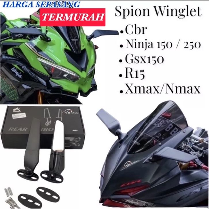 Spion Motor Spion Motor Kaca Spion Winglet Stealth Racing Full CNC Cbr 150r Ninja 250 Fi Cbr250rr R15 R25 R15v3 Nmax