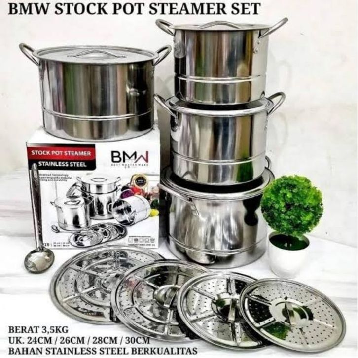 Panci Set JUMBO PANCI SET PLUS KUKUSAN STAINLESS STOCK POT 4 in 1