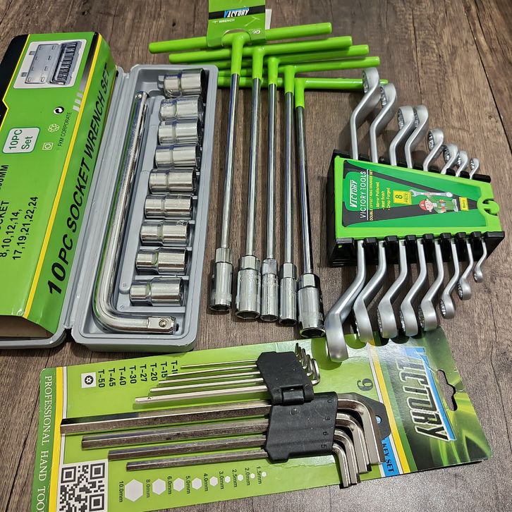 Set Kunci Bengkel Paket Hemat 4 Pcs / Kunci Shock Sok Set 10 Pcs 8 - 24 Mm Victory + Kunci T Set 5 Pcs 8-10-12-14-17 Mm