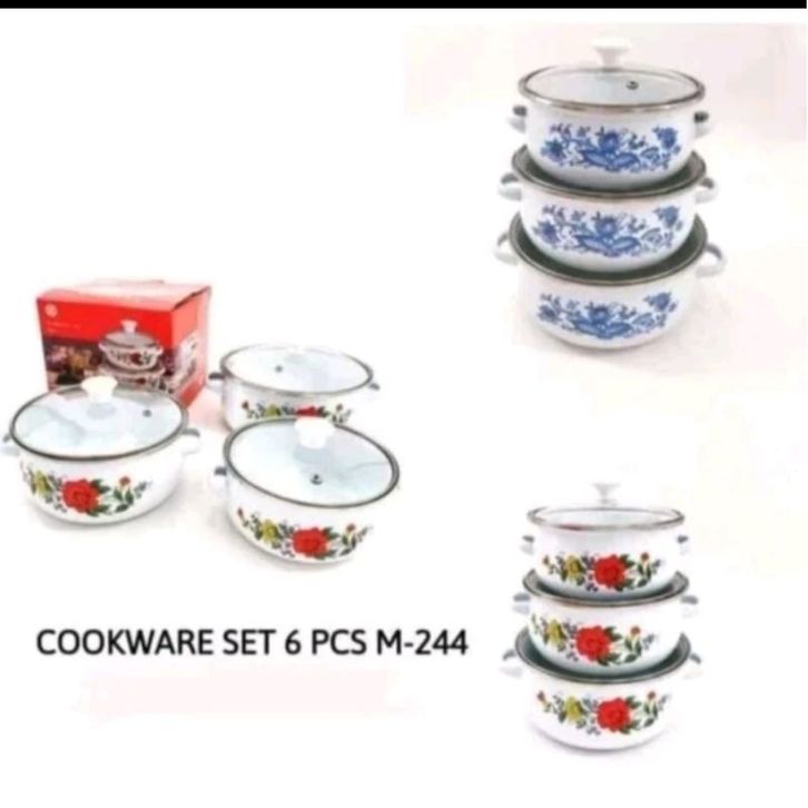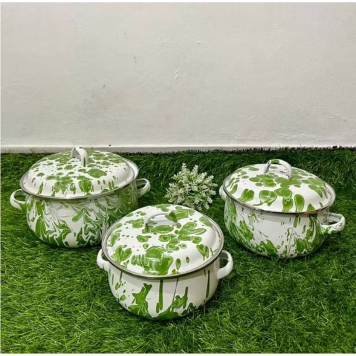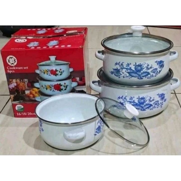 Panci Set PANCI SET ENAMEL 3 SUSUN MOTIF BUNGA + TUTUP KACA 16 18 20