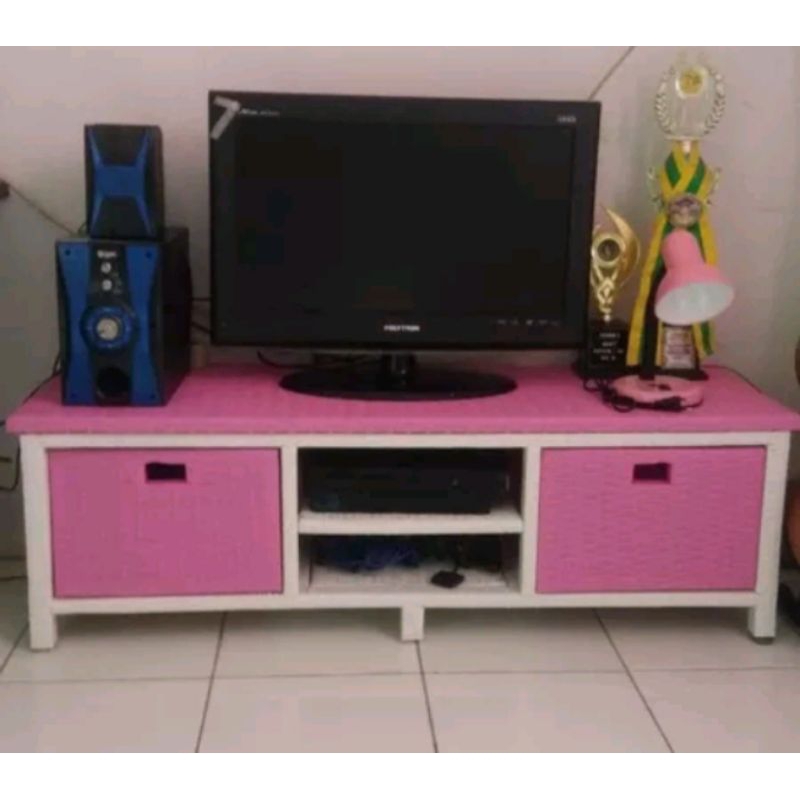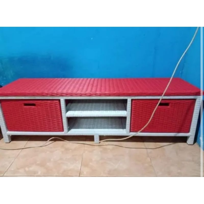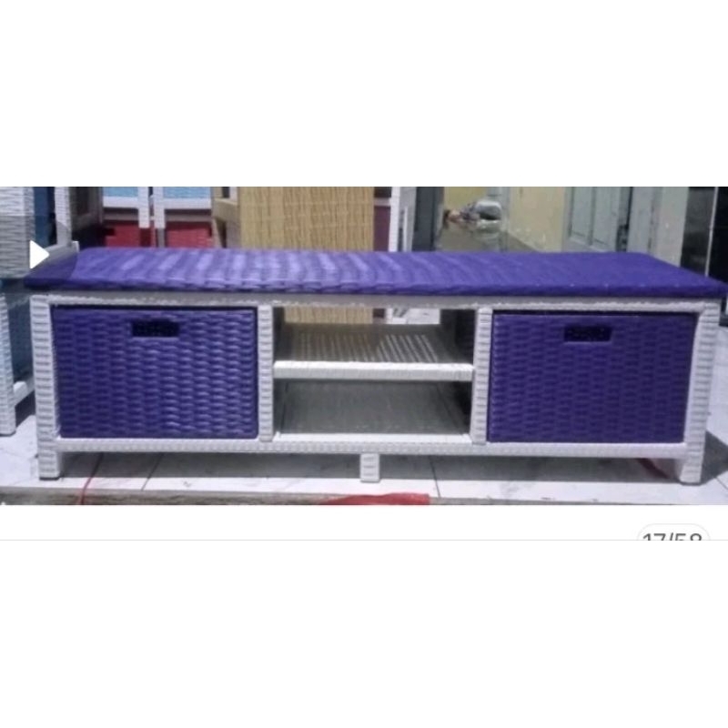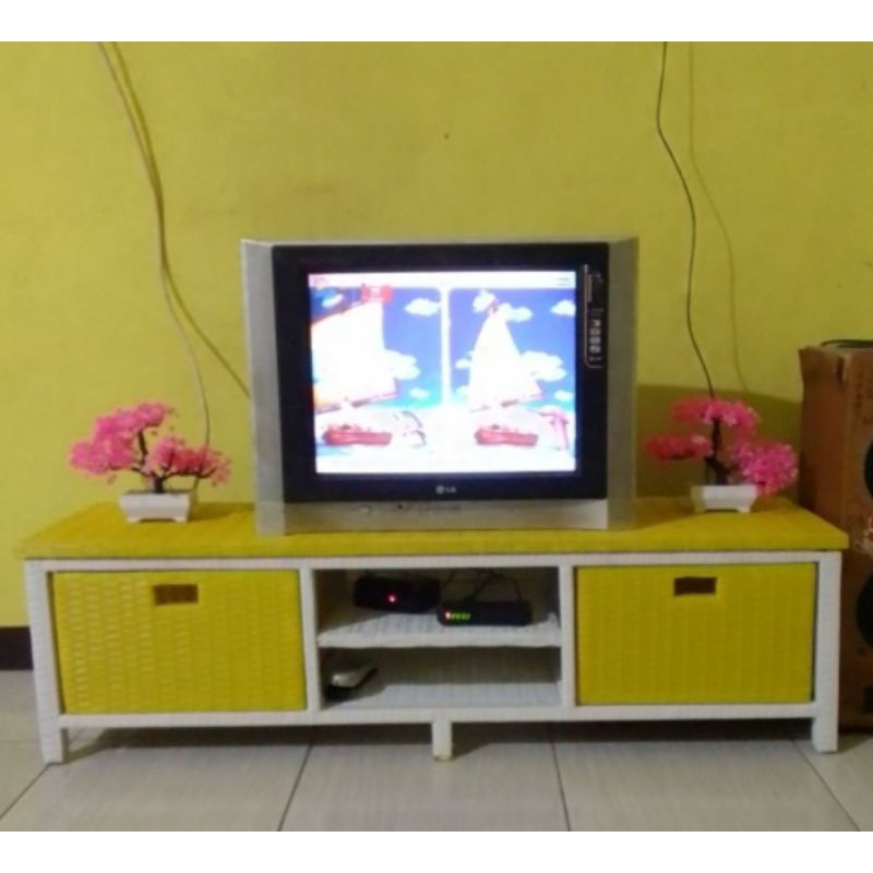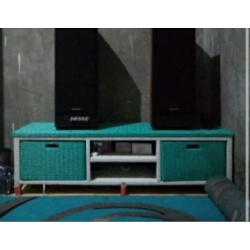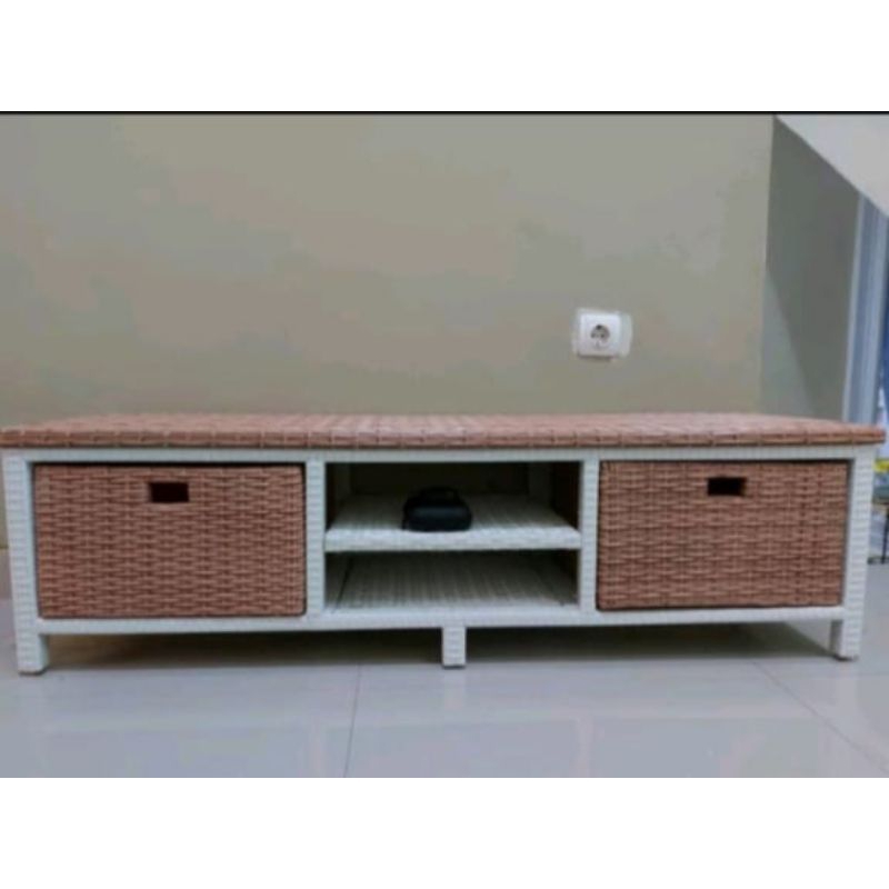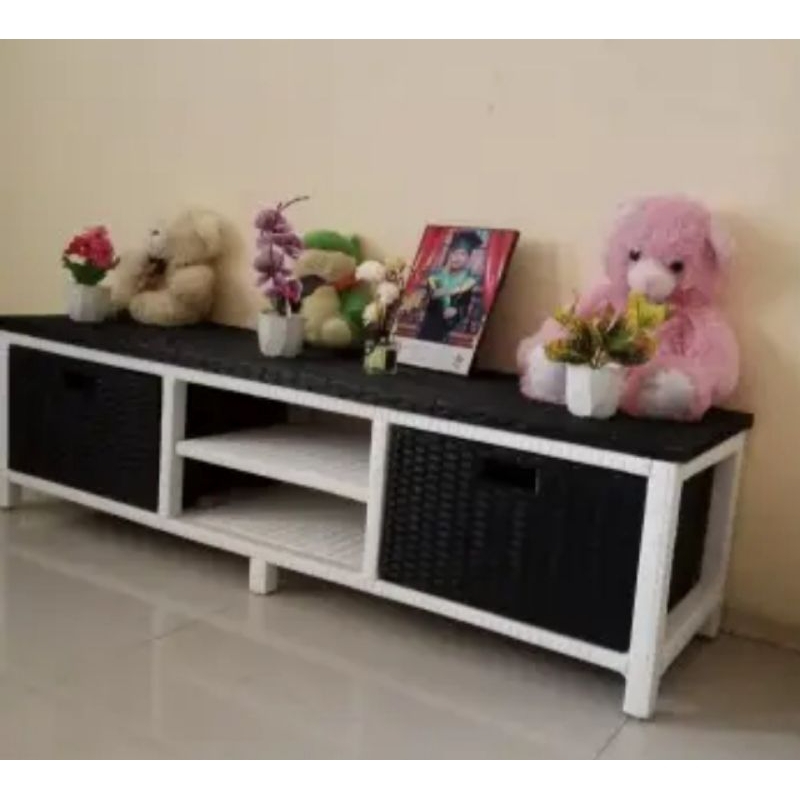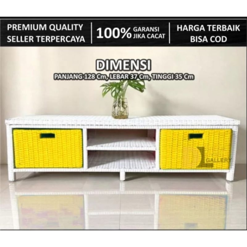 Meja Tv Rotan Sintetis Laci 2 CD Berkualitas Serbaguna - Rak TV Rotan Tahan Lama Termurah