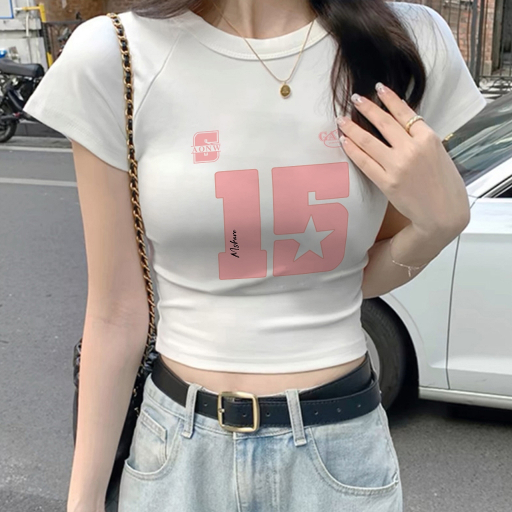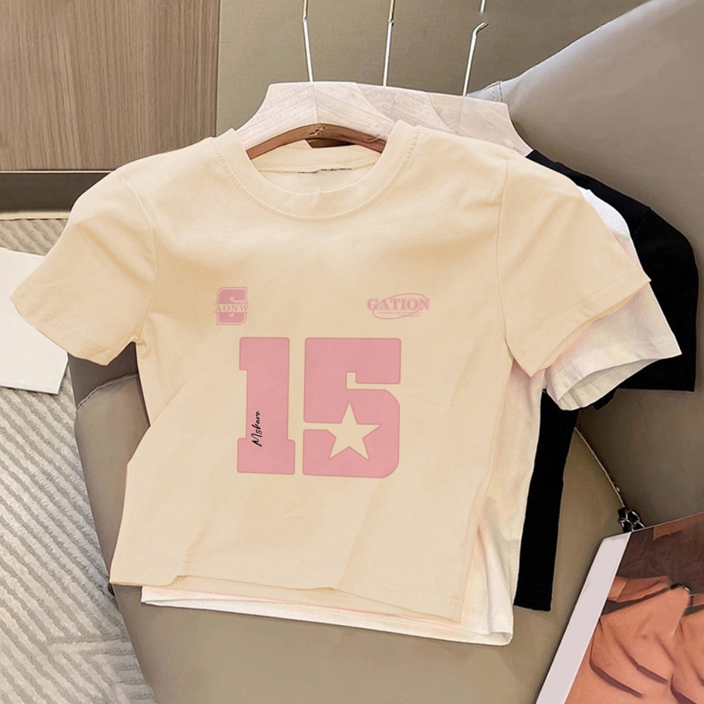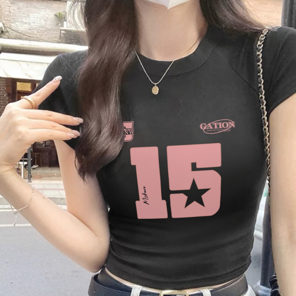 JW T-shirt Crop Top Lengan Pendek Kaos Wanita Crop Top Korea alphabet Print Kaos Crop Wanita Kekinian Baju Crop Top Wani