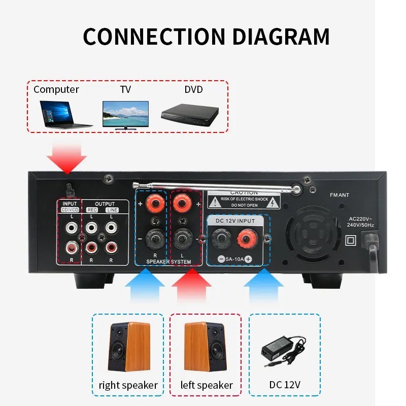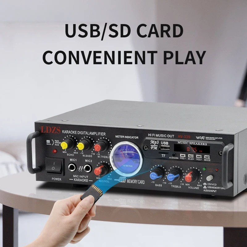 AMPLIFIER BLUETOOTH SUBWOOFER / 2000W AV-339A 2-CHANNEL HIFI STEREO APE KARAOKE AUDIO AMPLFIER BT 5.0 POWER AMPLI VU MET