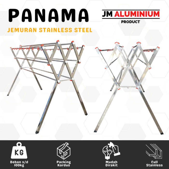 Jemuran Stainless Steel JUMBO SUPER | Panama - 1,8 M / 180 CM | Palang 9 | S/D 100KG