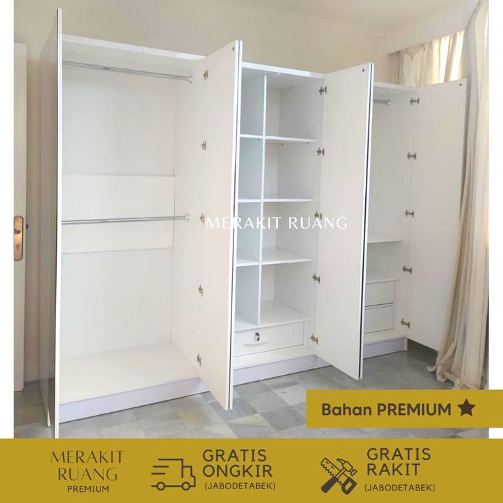 Lemari Pakaian Premium Frameless Full Cermin 6 Pintu Bahan Premium Blockboard