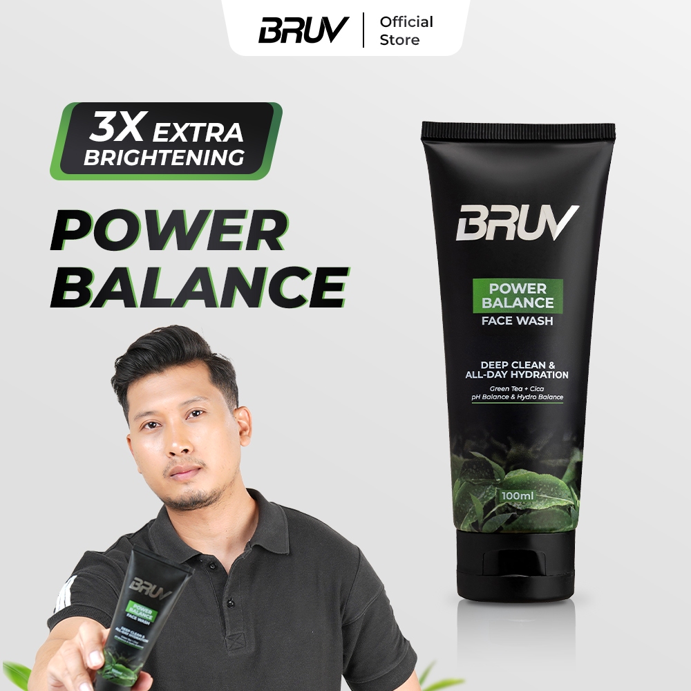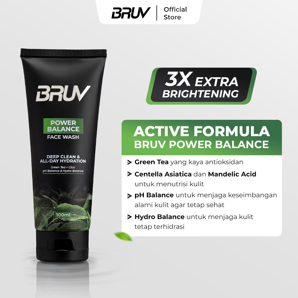 BRUV Fe Wash Power Balance 100ml | Niinamide, Green Tea, Tea Tree Oil | Sabun Cuci Muka Pria Mengurangi Minyak Mencerahk