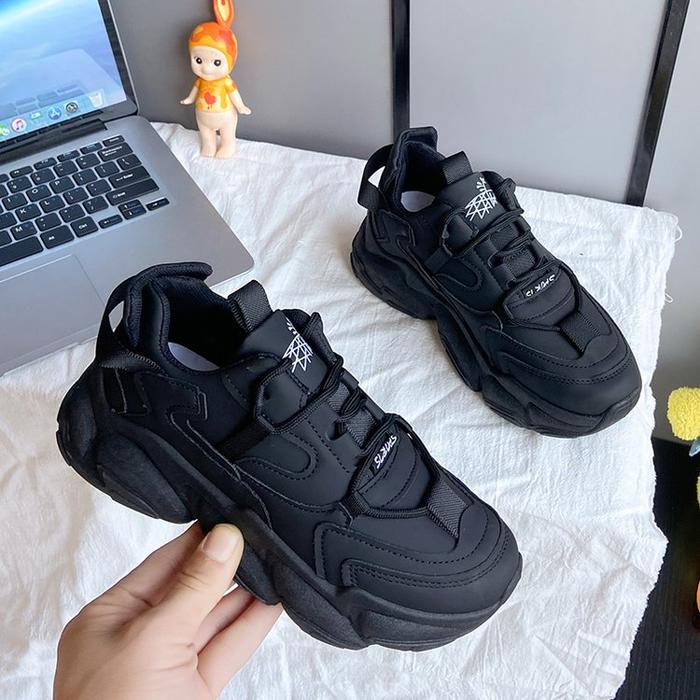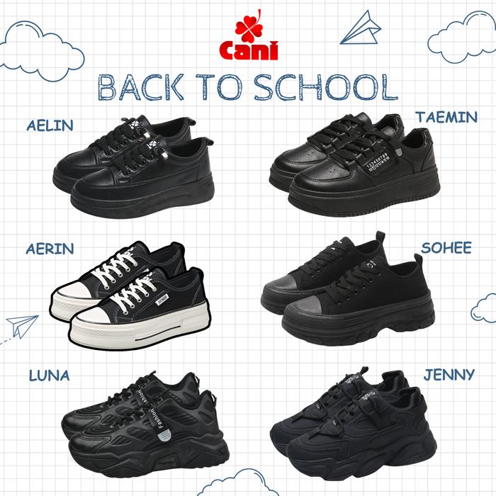 Cani Back To School Sepatu Sekolah - Sneakers Hitam Wanita Polos Casual Karet Shoes - Aelin - Fullblack, 37