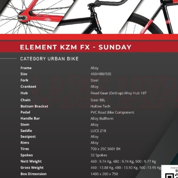 Sepeda Fixie Element Police Sunday Kzm 700C Frame Alloy Ringan