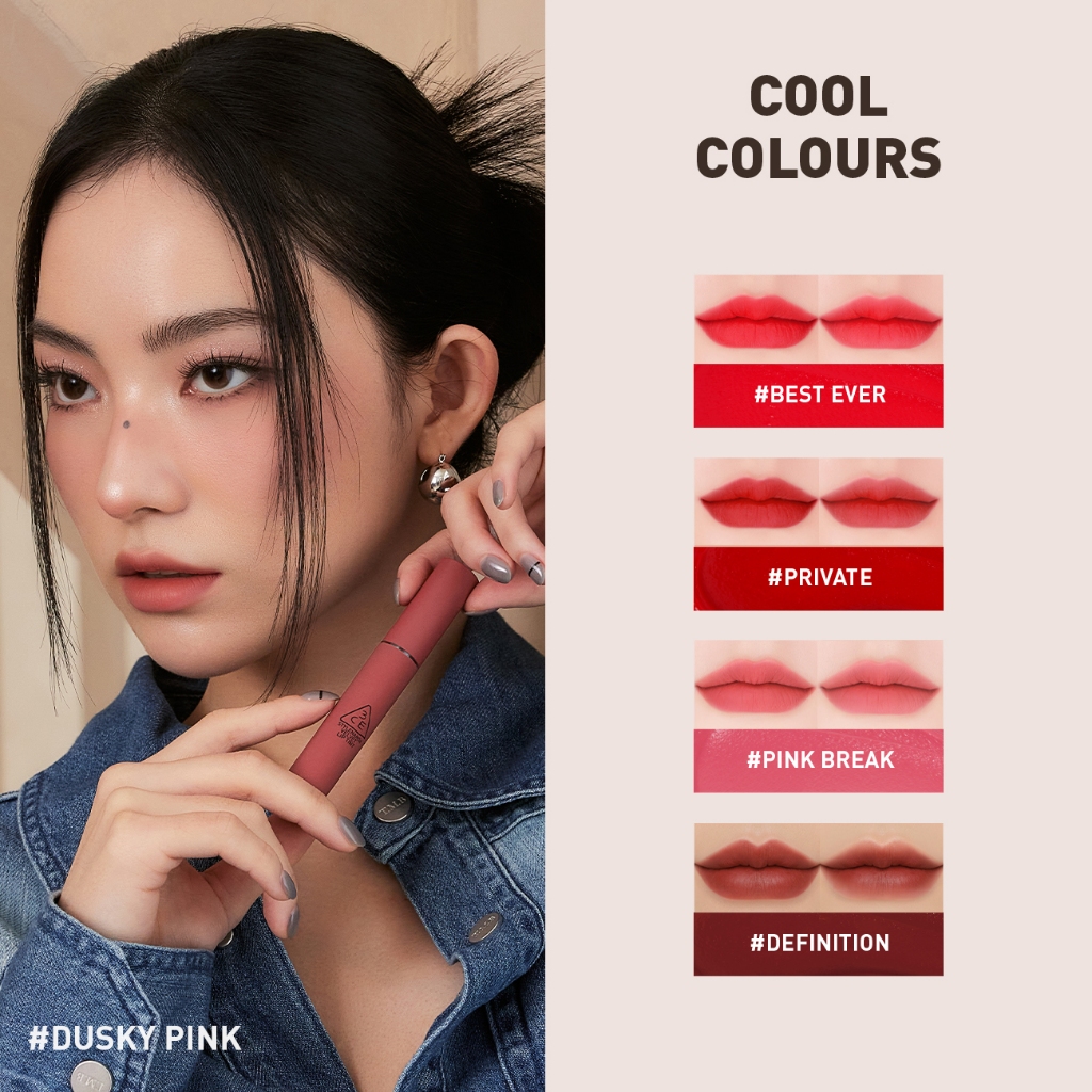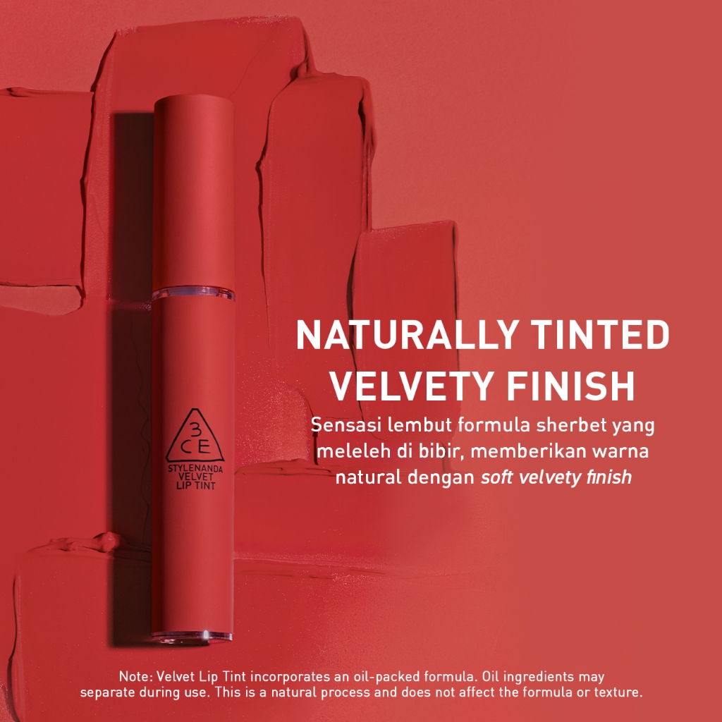 LIP CREAM 3CE OFFICIAL VELVET LIP TINT - LIPTINT SOFT MATTE LONGLASTING NON DRYING NATURAL TAHAN LAMA KOREA