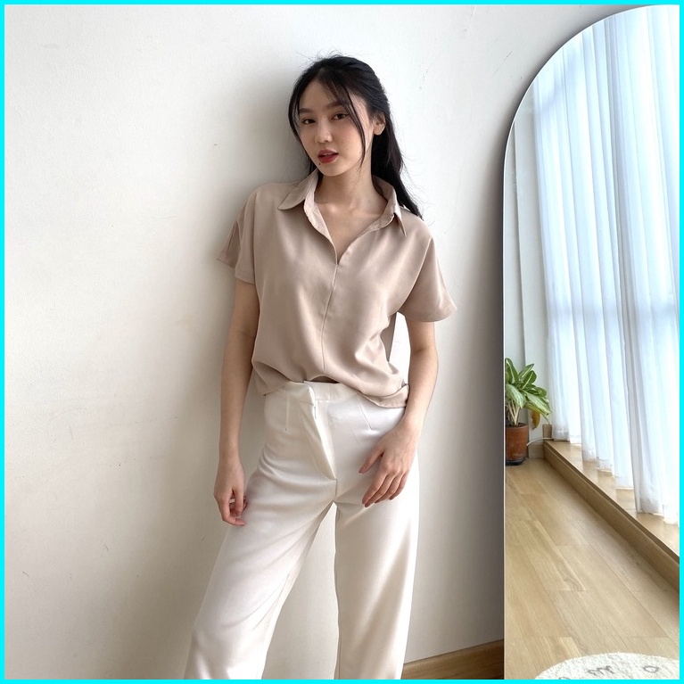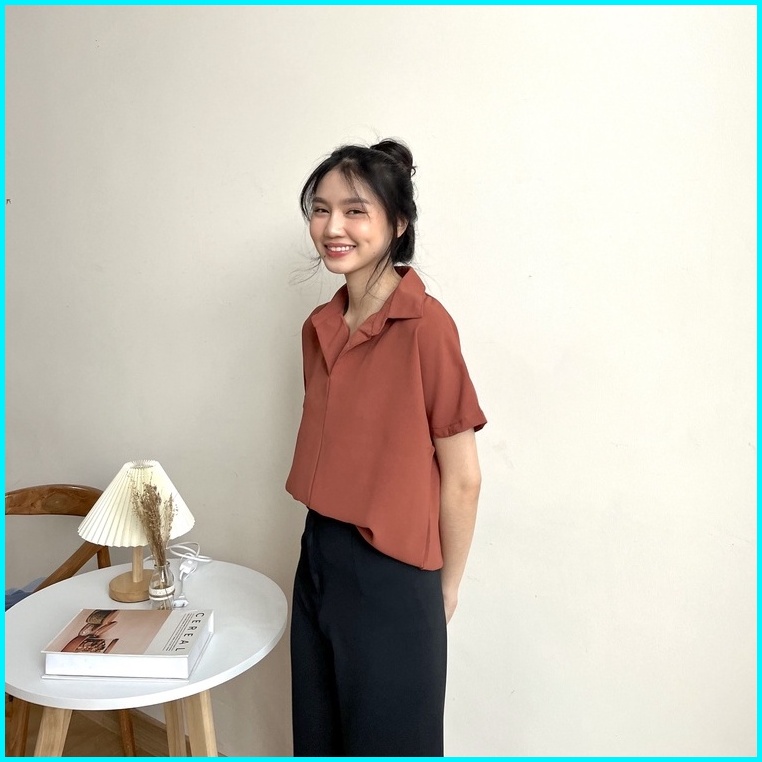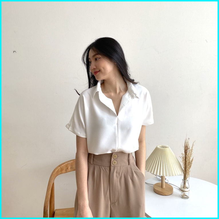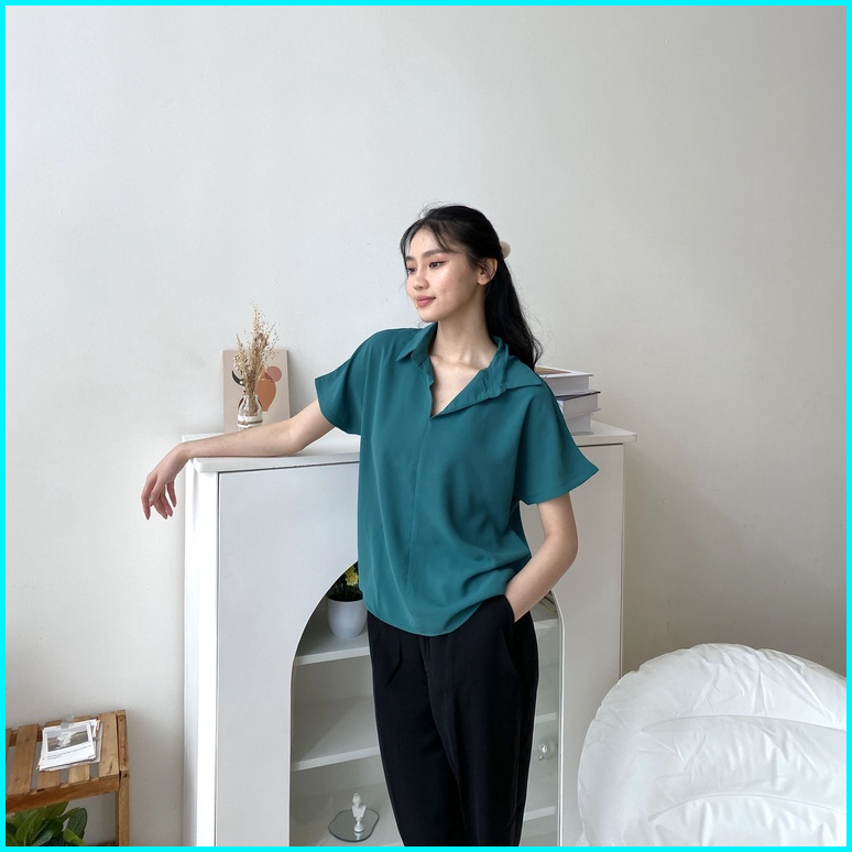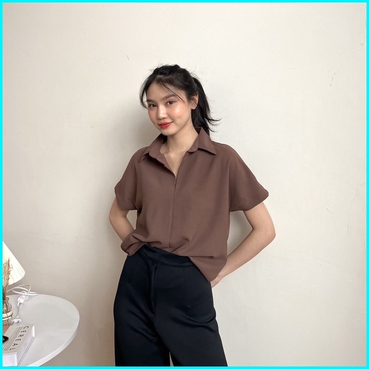 Kaorithelabel Kyuto Basic Top Lengan Pendek Blouse Wanita - Casual Top - Atasan Kekinian - Baju Atasan Wanita Terbaru -