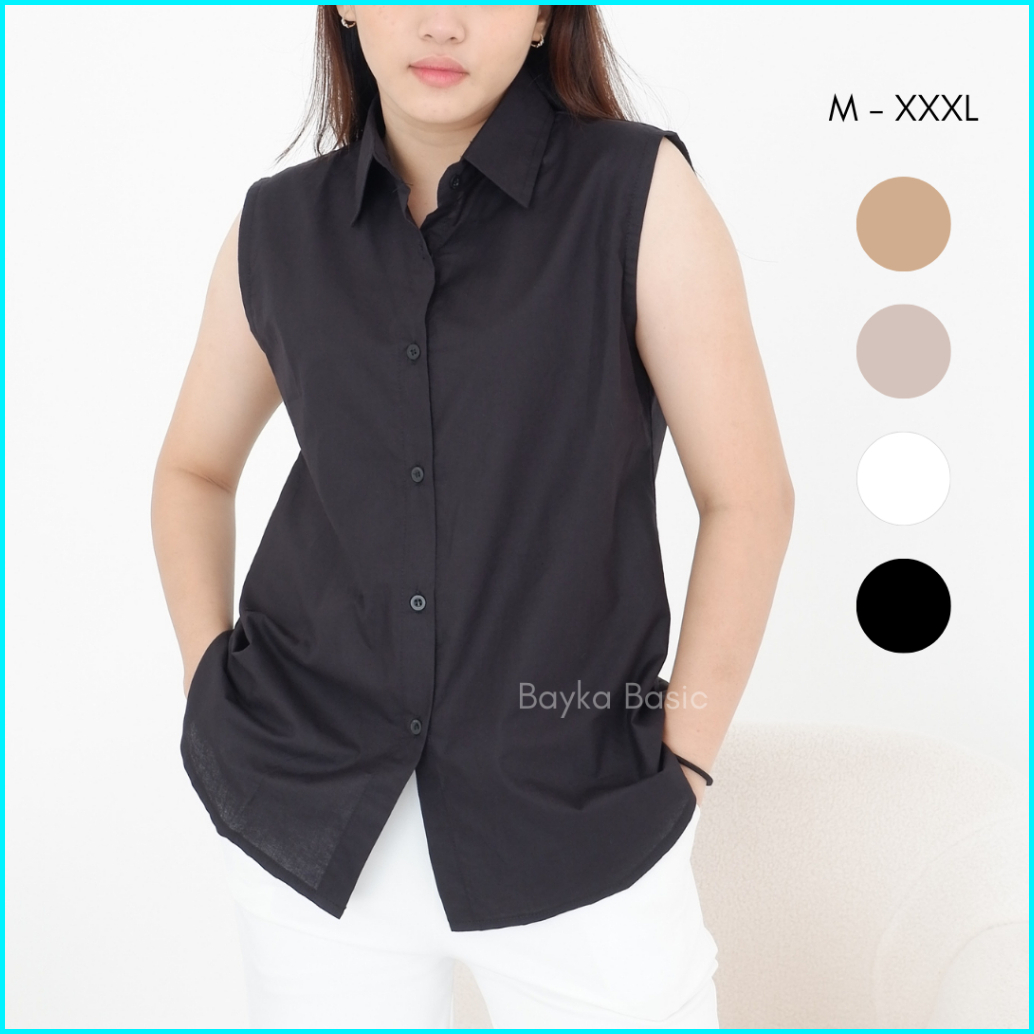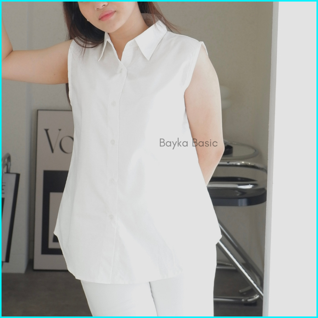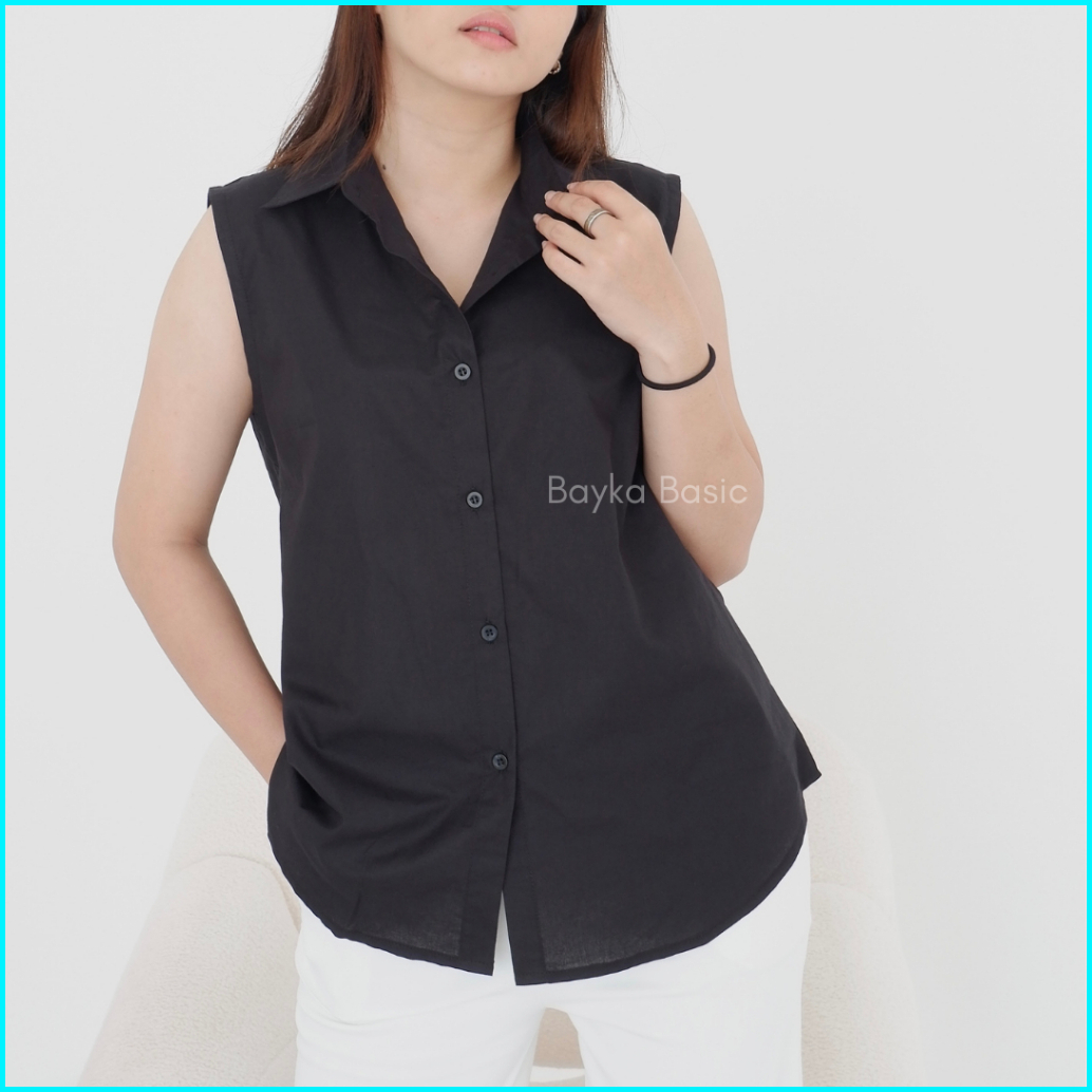Bayka - Kemeja Wanita Tanpa Lengan Sleeveless Collar Shirt Cotton Inner Kemeja Kerah Atasan Kancing Depan Katun Big Size