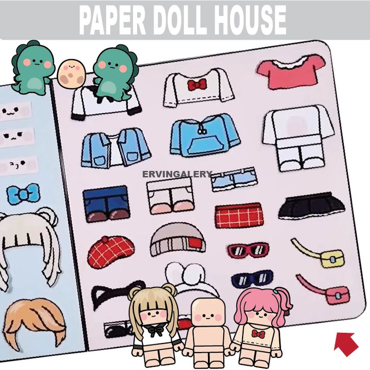 paper doll house Roblox Dino quiet busy book mainan edukatif anak bongkar pasang boneka kertas viral Anak perempuan ter