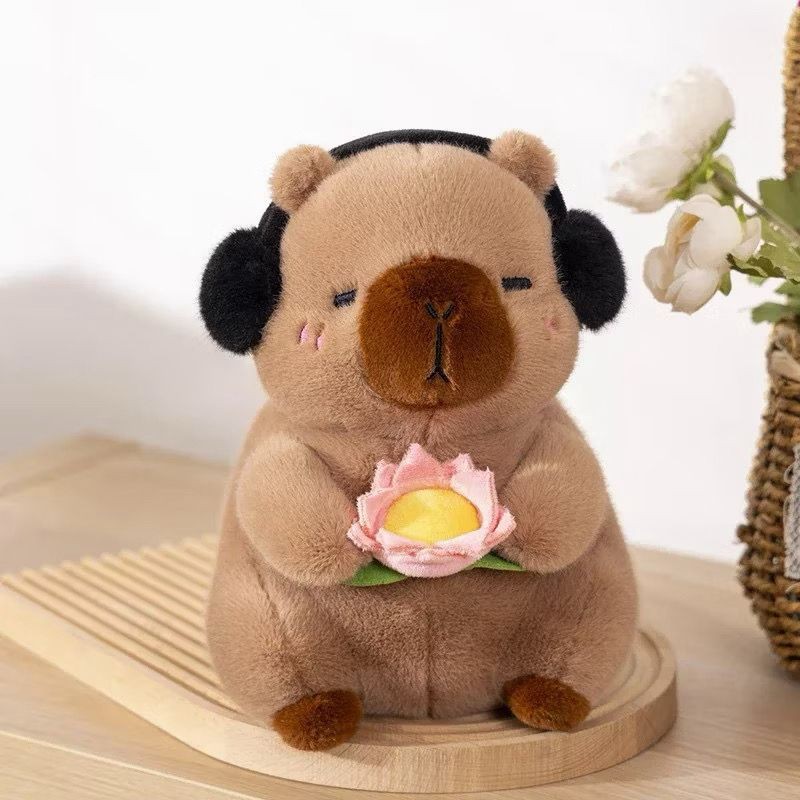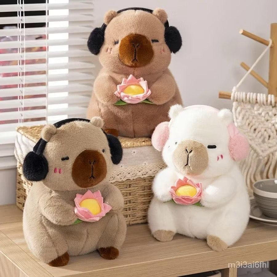 Boneka Terbaru Hadiah Anak Perempuan Boneka Lucu Capybara Plush Toy Stuffed Animals Capybara Hold Lotus Flower White-Fac