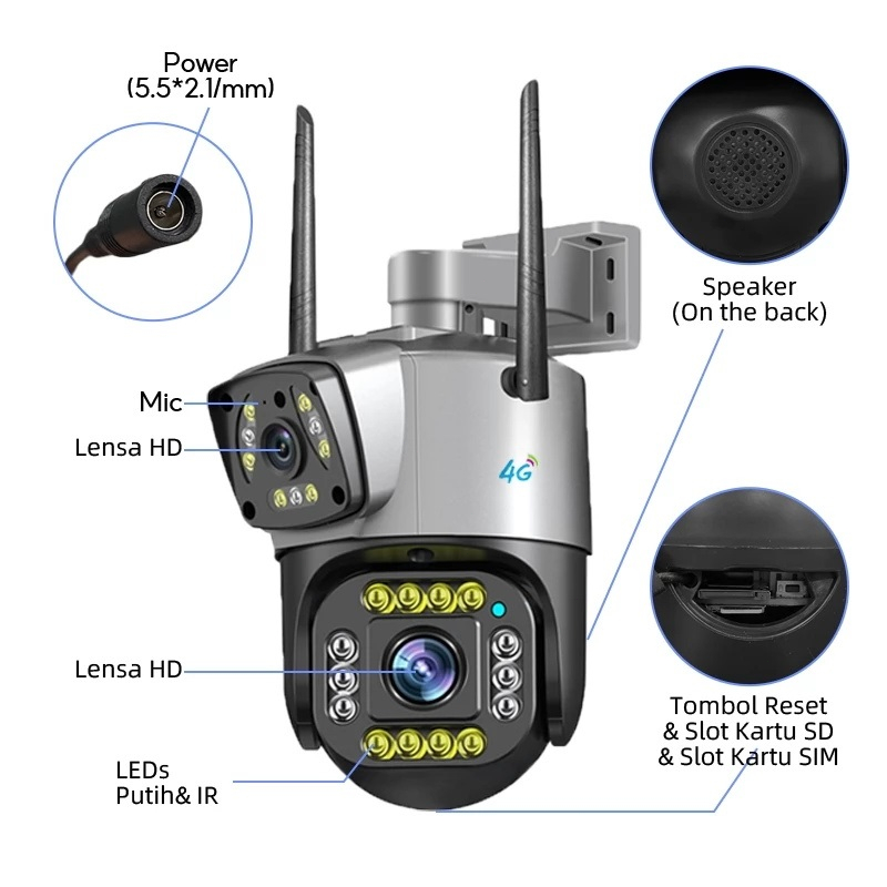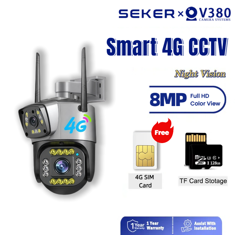 CCTV 4G Outdoor Dual Lens 8MP 360° Motion Detect Two-Way Voice PTZ View Security Kamera