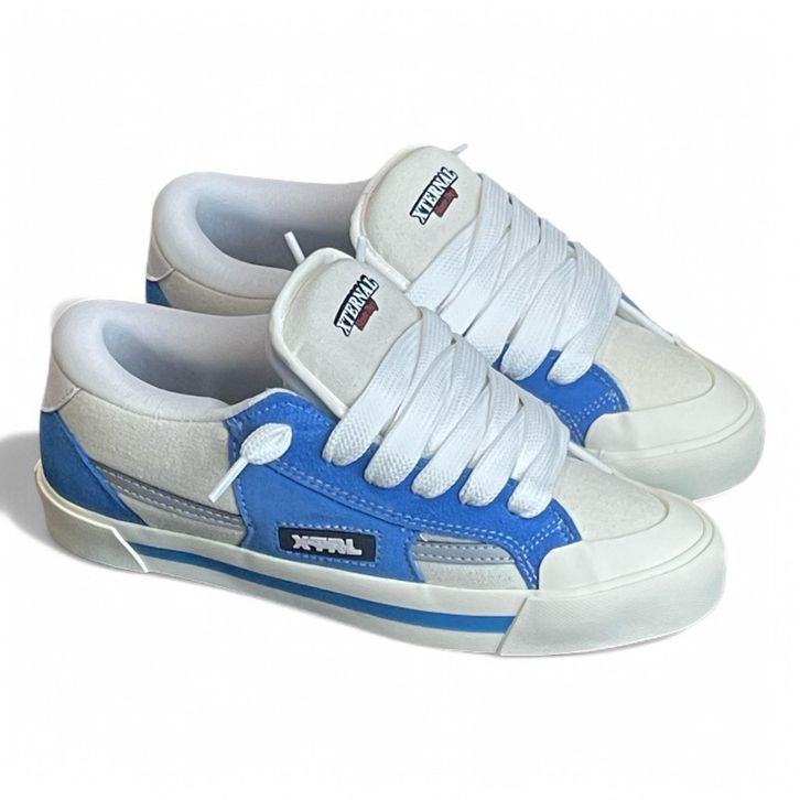Sepatu Fat Shoes XternalStepSure Skateboard Gemuk Reflective White Blue Sepatu Gemuk Sneaker Pria Wanita Suede Kanvas Ca
