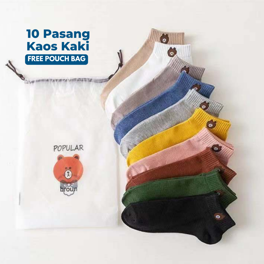 10 Pasang Kaos Kaki Bear Free Pouch/Kaos Kaki Beruang Pendek 10 pasang mix warna