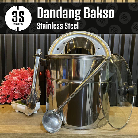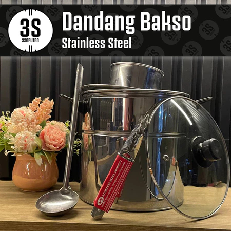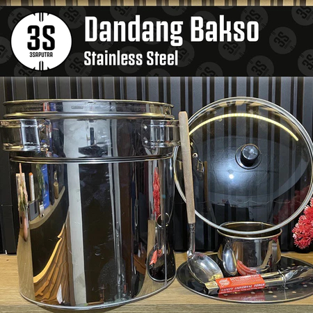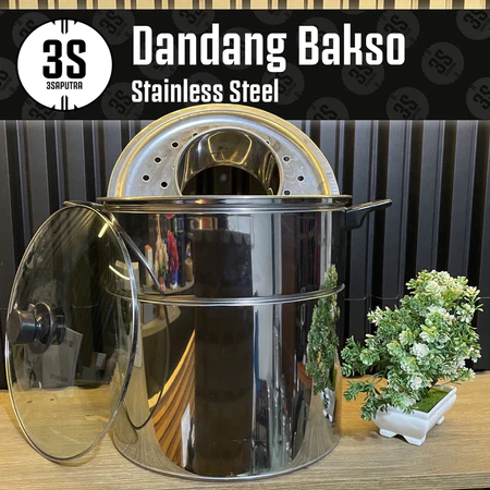 DANDANG BAKSO SEKAT 22 / 24 / 26 / 28 / 30 CM PANCI STAINLESS STEEL TUTUP KACA