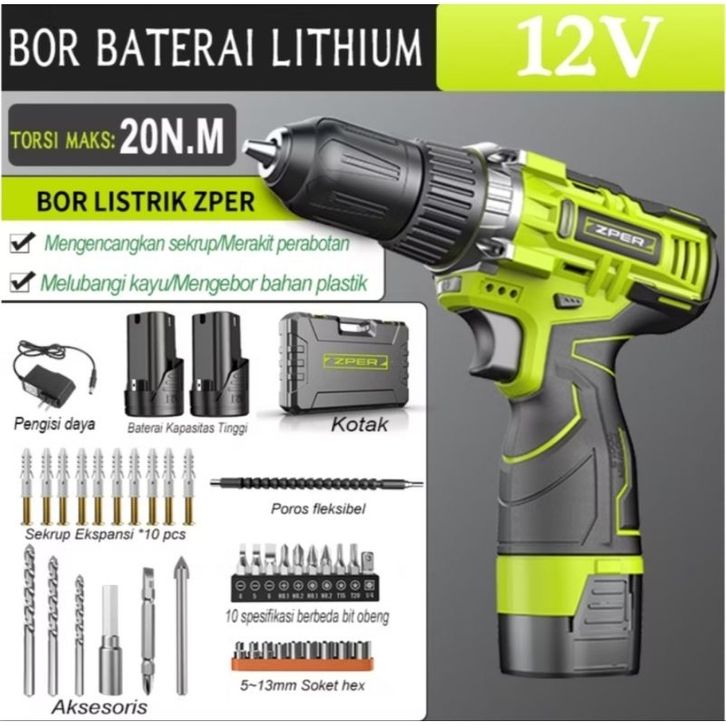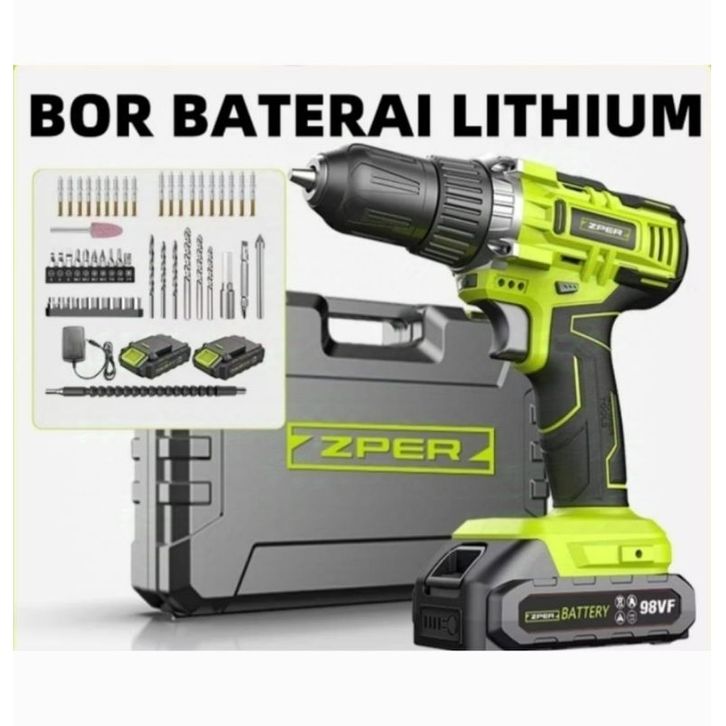 Mesin Bor Baterai 21 V ZPER Impact Drill Cordless Fullset DISKON