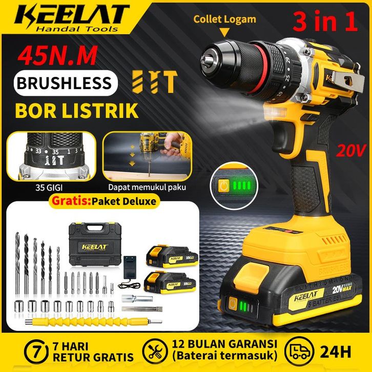 KEELAT KCD013 20V Bor Baterai Brushless 10mm Mesin Bor Cordless Drill Impact Bor Listrik Cordless Drill Bor Tanpa Kabe