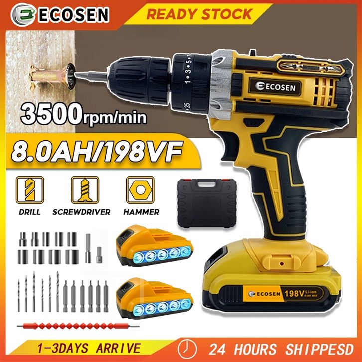 ECOSEN Bor Baterai Bor Cas Bor Listrik Bor batre Besi Kayu Kualitas Tinggi Cordless Electric Drill DISKON
