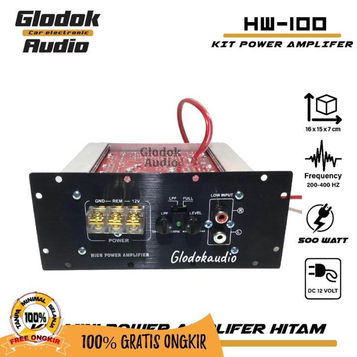 BEBAS ONGKIR Kit power amplifier Subwofer 500 watts dc 12 volt, modul kit Bastub aktif Hitam