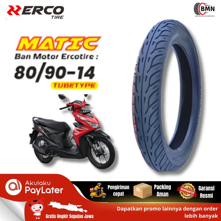 ERCO TIRE Satu Set Ban Motor Matic ERCO Tubeless NonTubeless, 90/90-14 dan 80/90-14