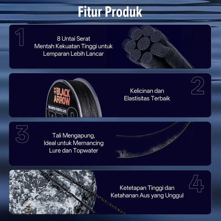 Senar Pancing SeaHunter Black Arrow Senar PE X8 150m 5.4kg 22.7kg